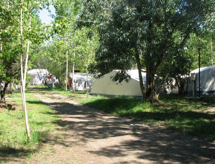 Unser Camp liegt am Rand des Zeltplatzes in einem separaten überwiegend schattigen Bereich, der extra für Jugendgruppen vorgesehen ist